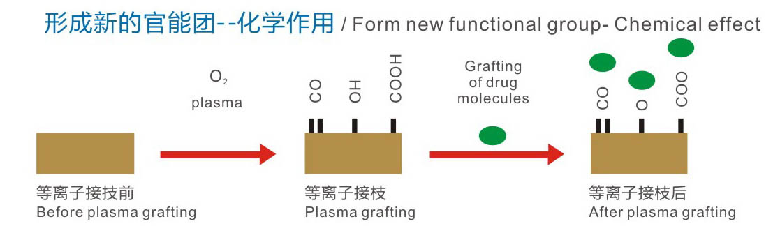 如果放電氣體中引入反應(yīng)性氣體,那么在活化的材料表面會發(fā)生復(fù)雜的化學(xué)反應(yīng),引入新的官能團(tuán),如烴基、氨基、羧基等,這些官能團(tuán)都是活性基團(tuán),能明顯提高材料表面活性。