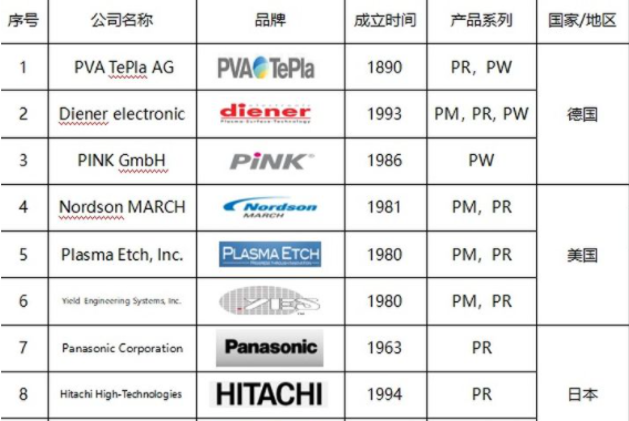 不過(guò)近幾年,國(guó)內(nèi)等離子清洗機(jī)發(fā)展很快,因?yàn)檫M(jìn)口機(jī)器價(jià)格貴,如果國(guó)產(chǎn)機(jī)可以達(dá)到同樣的效果,國(guó)內(nèi)的公司當(dāng)然愿意選擇國(guó)產(chǎn)品牌,東信的銷售經(jīng)理常年在外面拜訪客戶,根據(jù)他們對(duì)這些半導(dǎo)體企業(yè)的走訪,發(fā)現(xiàn)國(guó)內(nèi)半導(dǎo)體行業(yè)用的多的品牌包括下面的這一些,我整理出來(lái)了一個(gè)表格,給大家做做參考